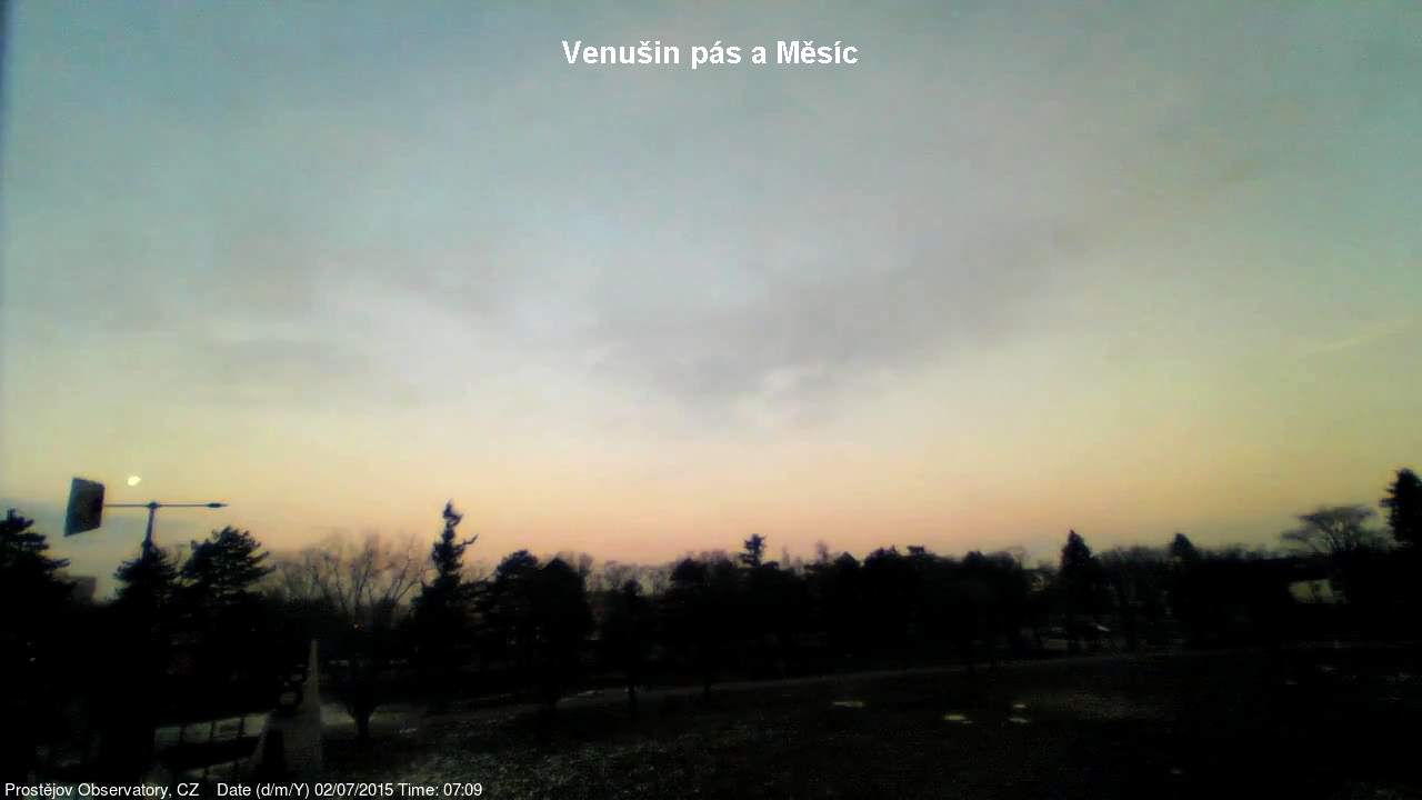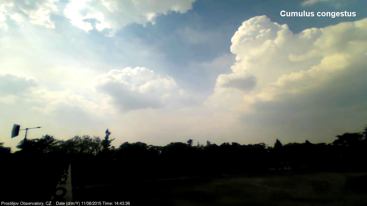 V lednu 2015 jsme na naší hvězdárně uvedli do provozu novou webkameru, zobrazující oblačnost s vyšším rozlišením, než měla dosavadní kamera. Je namířena na severo západo západ, odkud by měla zpravidla přicházet oblačnost. V levém spodním rohu je patrná větrná růžice ukazující aktuální směr větru. Zábradlí míří prakticky přesně na západ. Kamera pořizuje snímek automaticky každých 10 sekund a zachycuje zajímavé obrazy a situace nejen na nebi, ale i za zemi.