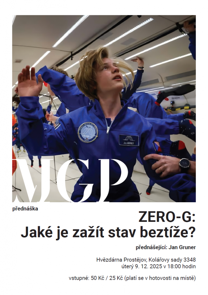 Přednáška Jan Gruner: "ZERO-G: Jaké je zažít stav beztíže?" v úterý 9. 12. od 18:00 Přednáška Jan Gruner: "ZERO-G: Jaké je zažít stav beztíže?" v úterý 9. 12. od 18:00