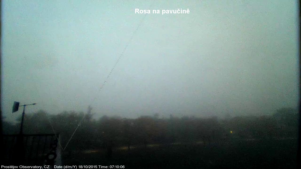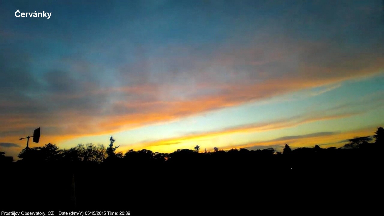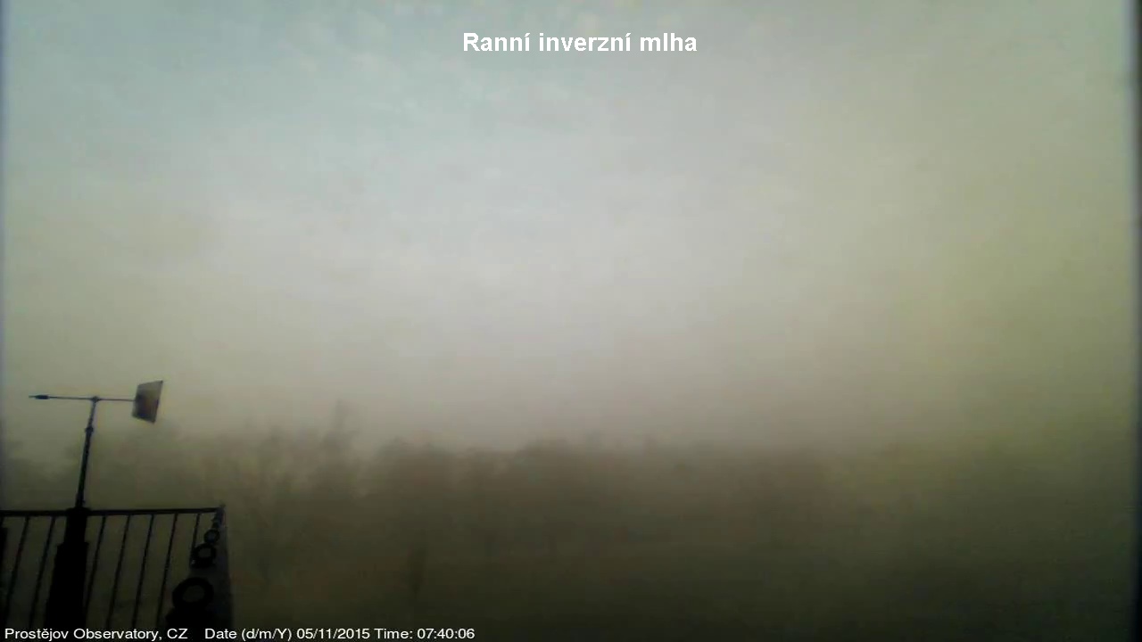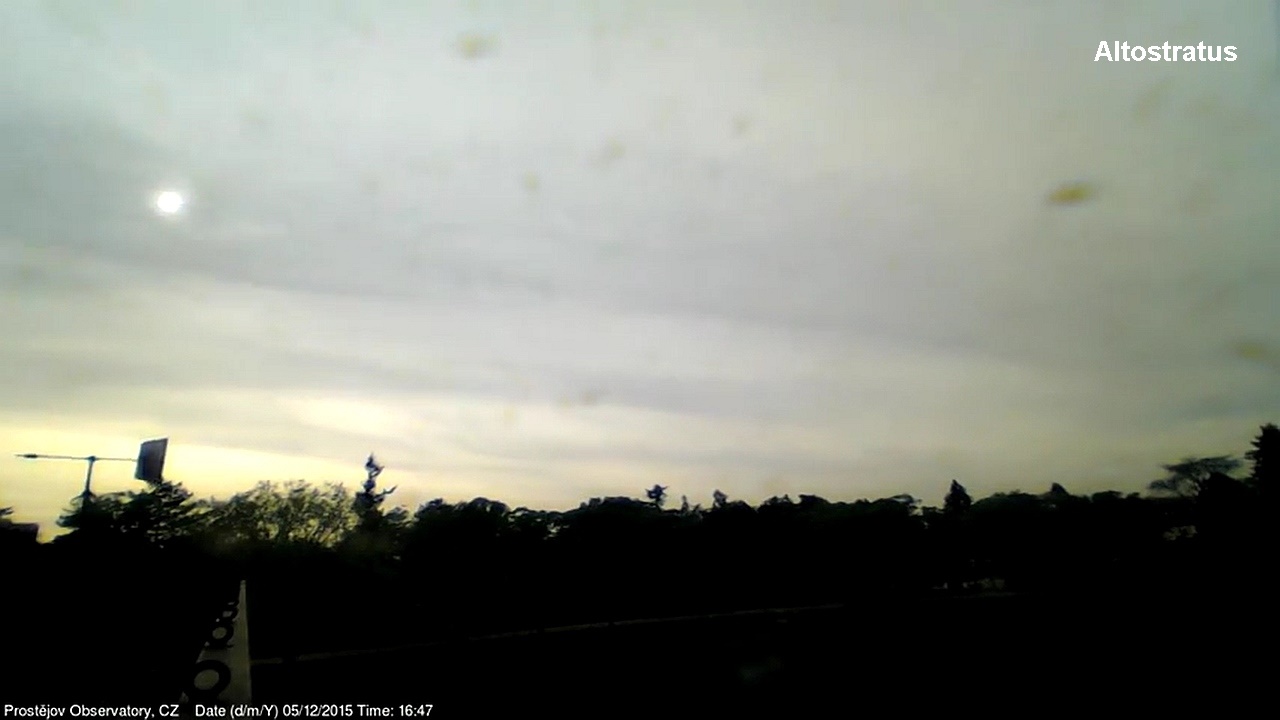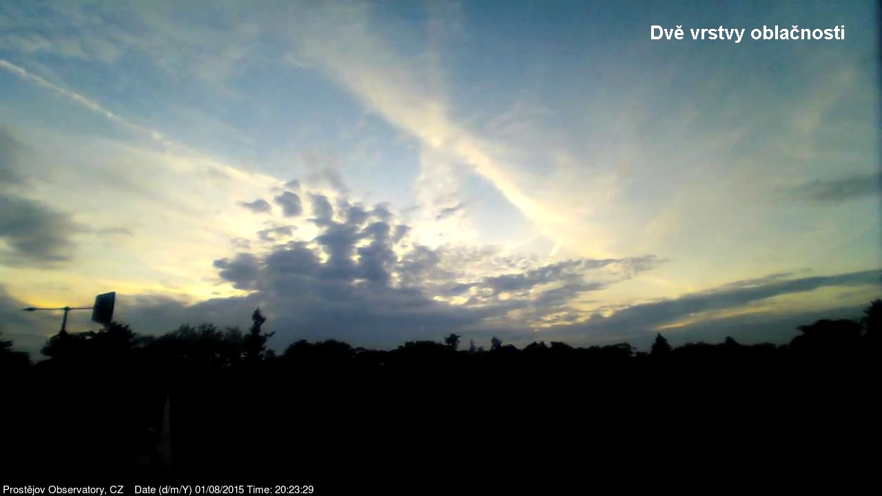 V lednu 2015 jsme na naší hvězdárně uvedli do provozu novou webkameru, zobrazující oblačnost s vyšším rozlišením, než měla dosavadní kamera. Je namířena na severo západo západ, odkud by měla zpravidla přicházet oblačnost. V levém spodním rohu je patrná větrná růžice ukazující aktuální směr větru. Zábradlí míří prakticky přesně na západ. Kamera pořizuje snímek automaticky každých 10 sekund a zachycuje zajímavé obrazy a situace nejen na nebi, ale i za zemi.