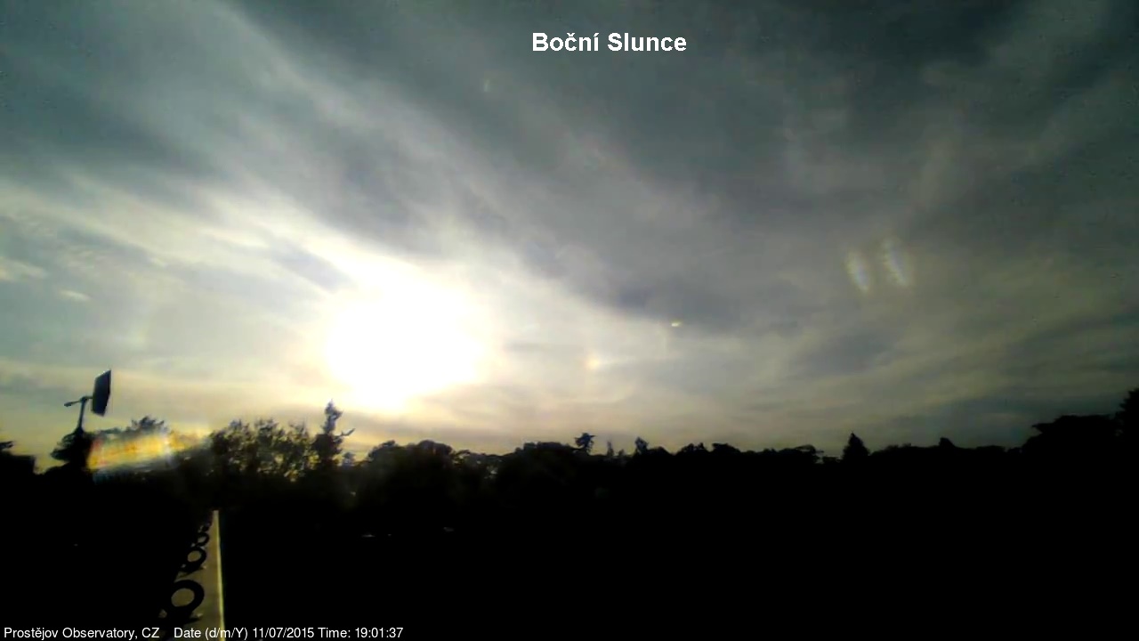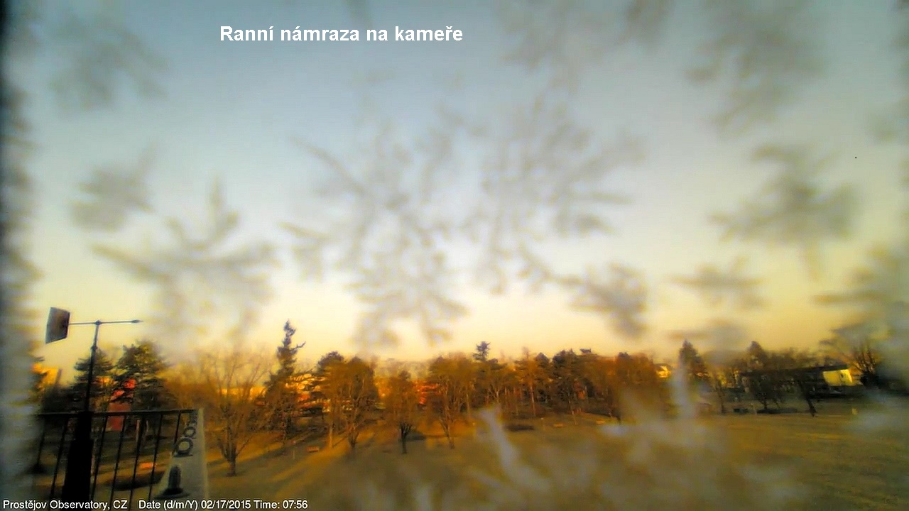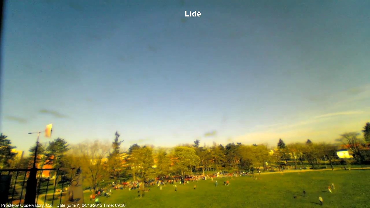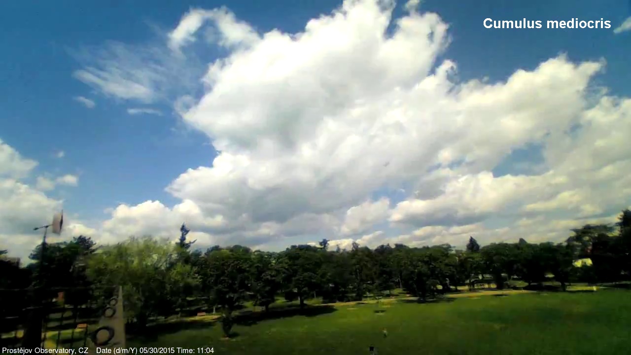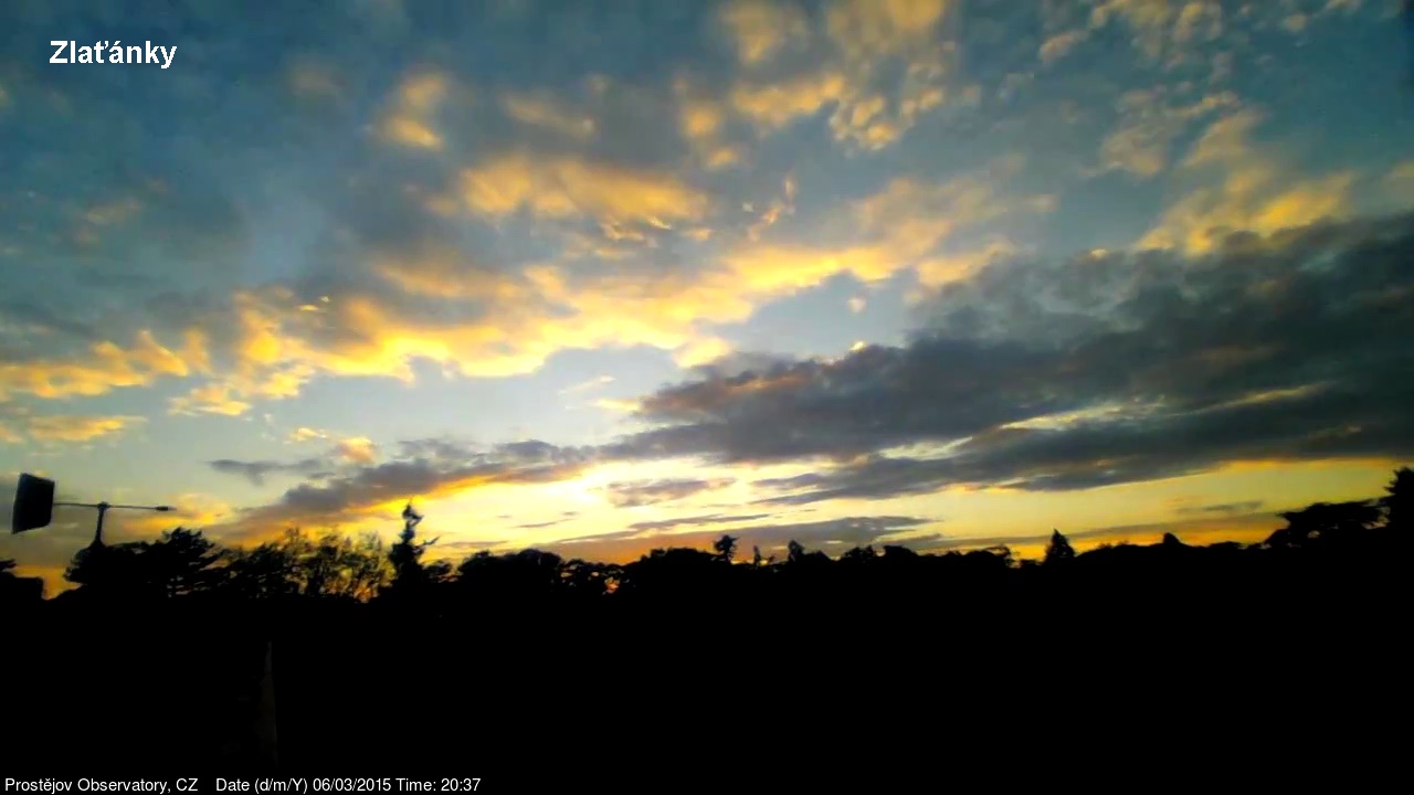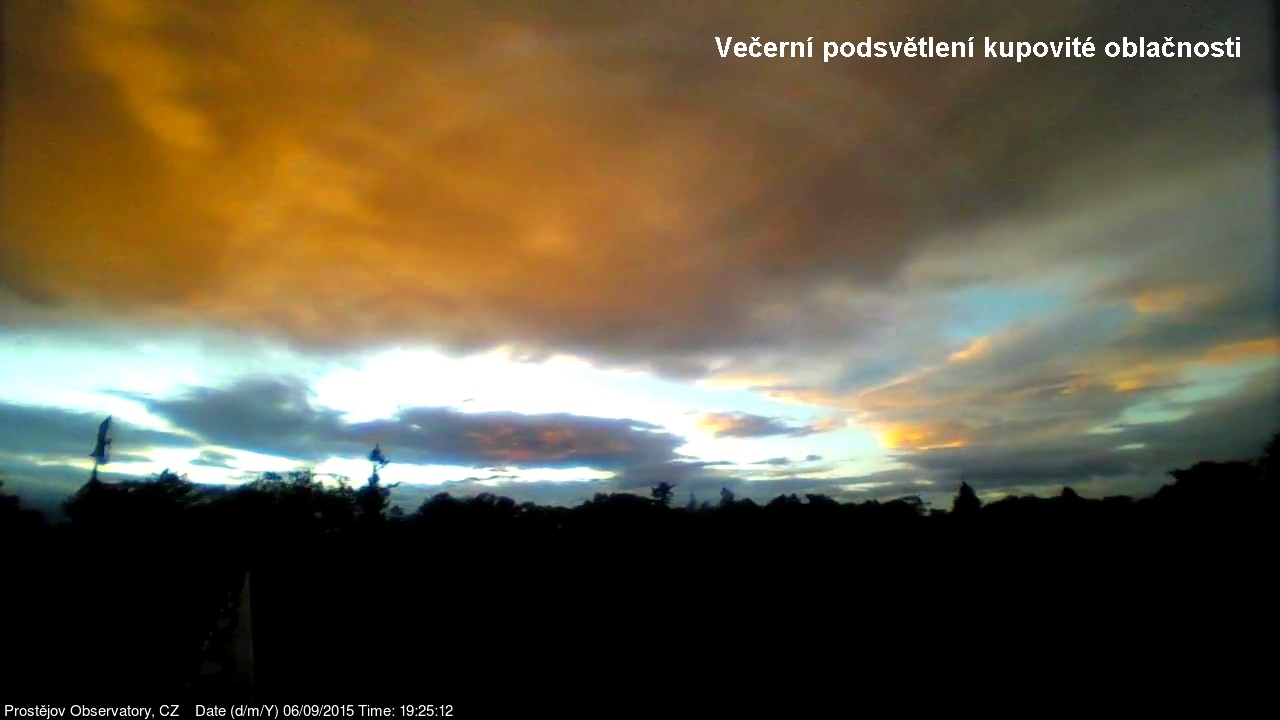 V lednu 2015 jsme na naší hvězdárně uvedli do provozu novou webkameru, zobrazující oblačnost s vyšším rozlišením, než měla dosavadní kamera. Je namířena na severo západo západ, odkud by měla zpravidla přicházet oblačnost. V levém spodním rohu je patrná větrná růžice ukazující aktuální směr větru. Zábradlí míří prakticky přesně na západ. Kamera pořizuje snímek automaticky každých 10 sekund a zachycuje zajímavé obrazy a situace nejen na nebi, ale i za zemi.