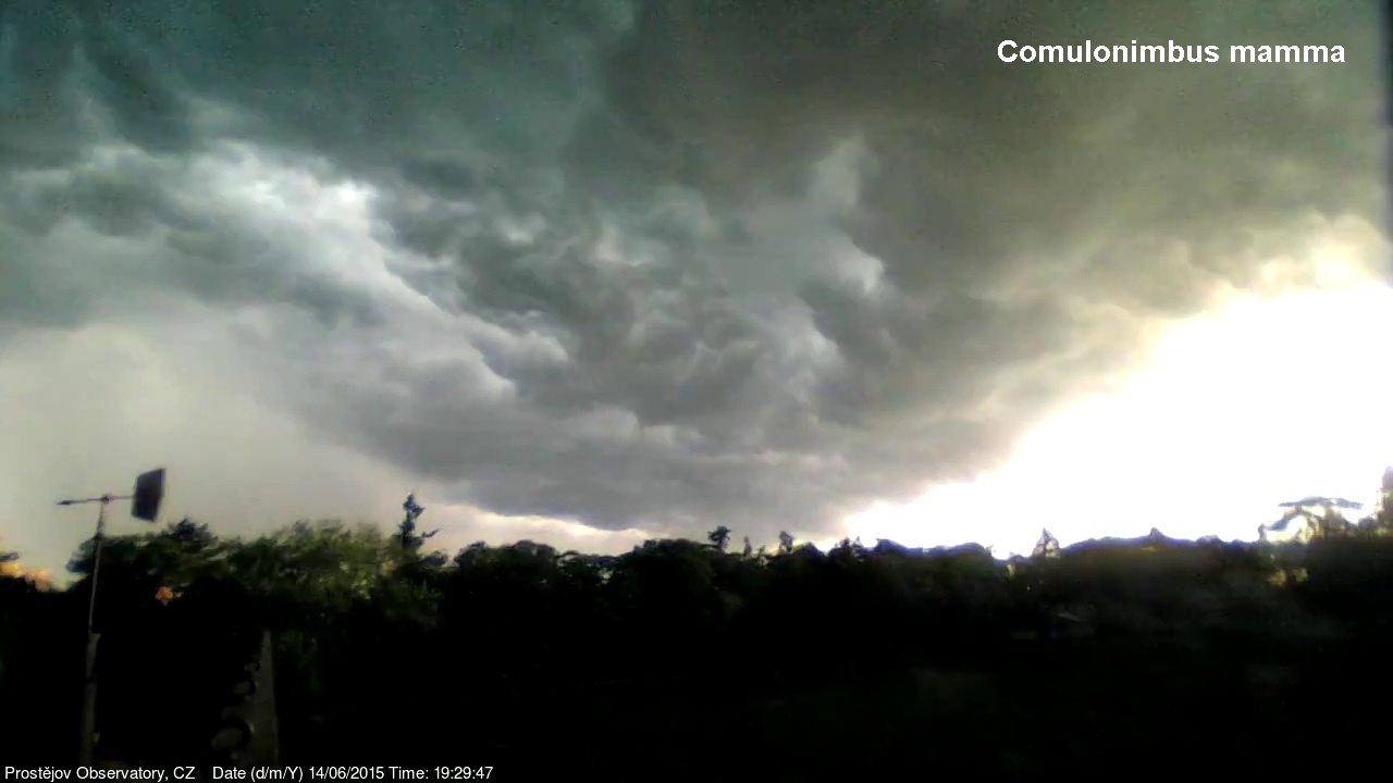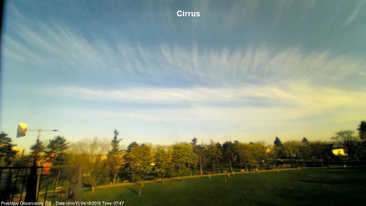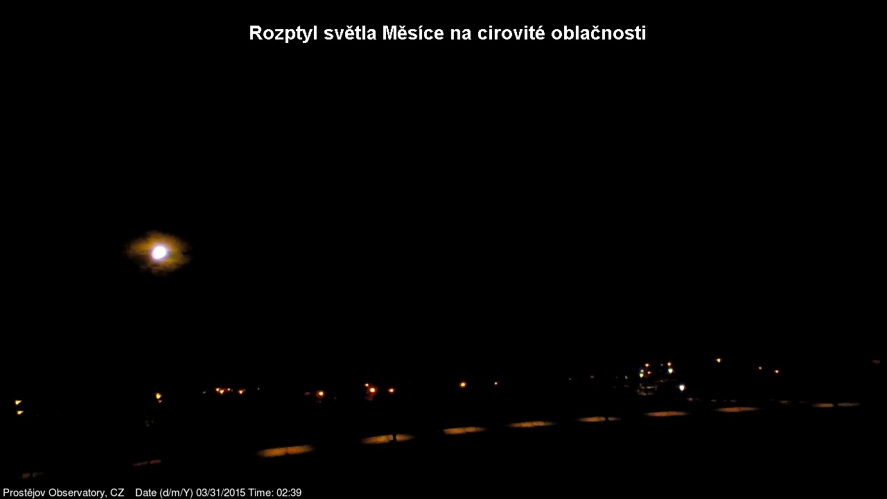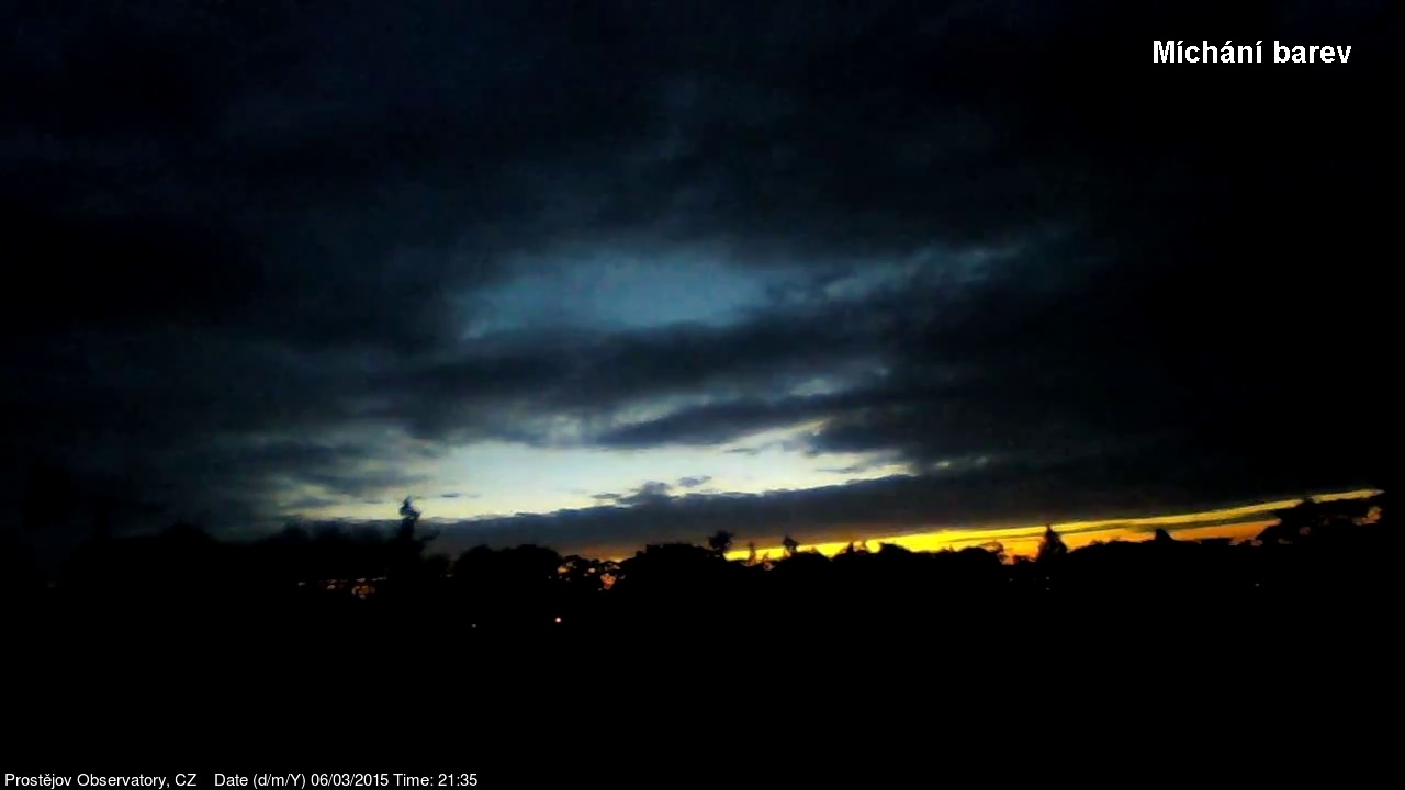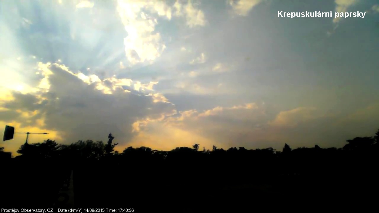 V lednu 2015 jsme na naší hvězdárně uvedli do provozu novou webkameru, zobrazující oblačnost s vyšším rozlišením, než měla dosavadní kamera. Je namířena na severo západo západ, odkud by měla zpravidla přicházet oblačnost. V levém spodním rohu je patrná větrná růžice ukazující aktuální směr větru. Zábradlí míří prakticky přesně na západ. Kamera pořizuje snímek automaticky každých 10 sekund a zachycuje zajímavé obrazy a situace nejen na nebi, ale i za zemi.